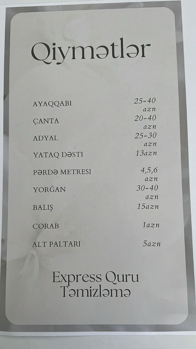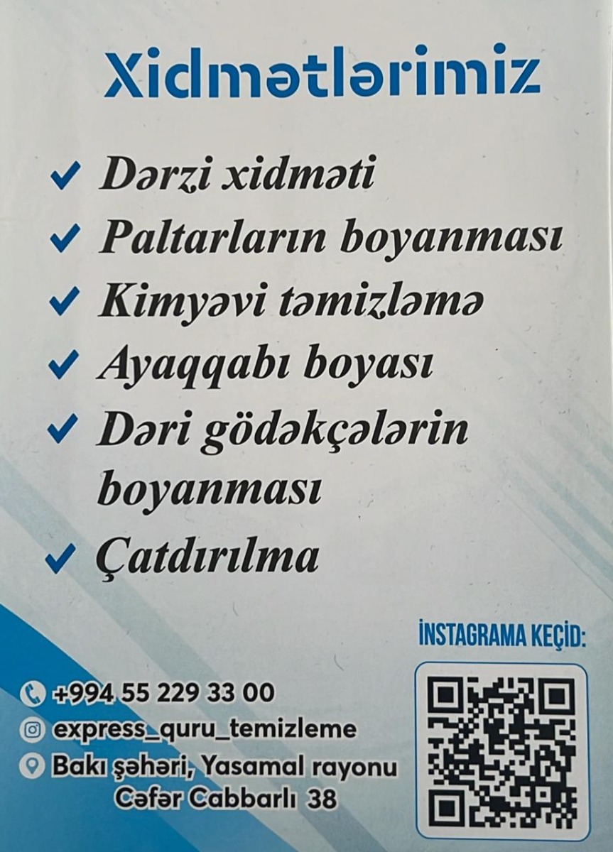 Express quru təmizləmə - Nizami filialı Nömrəni göstər